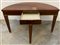 Tavolo da parete a mezzaluna in noce con piano a libro, bordure e piedi in meta
