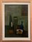 "Composizione con bottiglie" olio su tela (cm 78x58) Siglato in basso a destra. In cornice