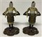 Coppia di figure in metallo in parte dipinto e dorato a forma di figure orienta