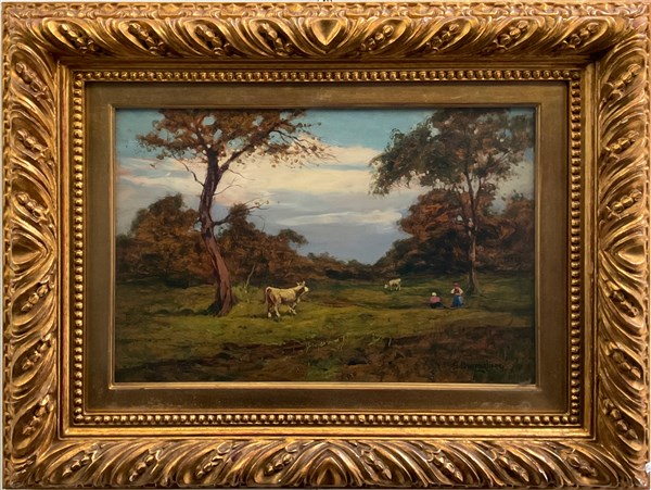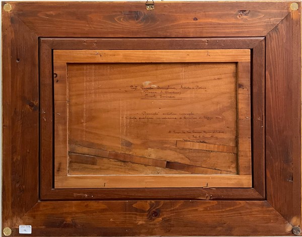 "Rivoli torinese" olio su compensato (cm. 31x43,5) Firmato in basso a destra. Al retro: firmato, titolato e dedicato. In cornice (diretti)