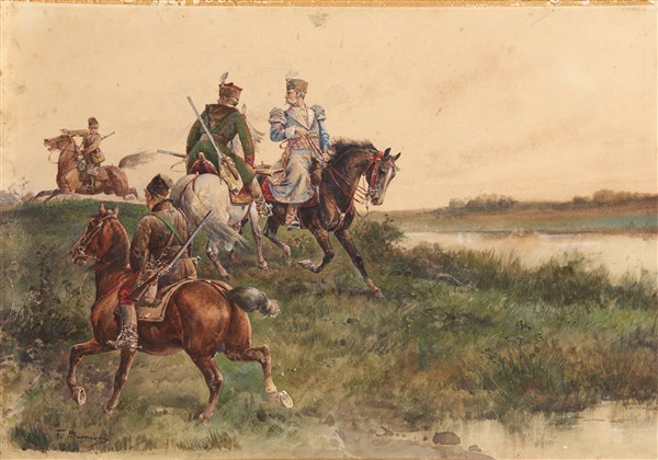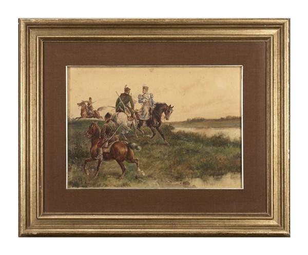 Francesco Mancini "Cavalleria reale" acquerello su carta (cm 26x39) Firmato in b