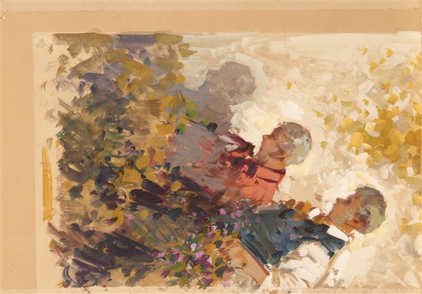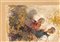 "Cavalleria reale" acquerello su carta (cm 26x39) Firmato in basso a sinistra. Al retro: studio a tecnica mista. In cornice (difetti)
