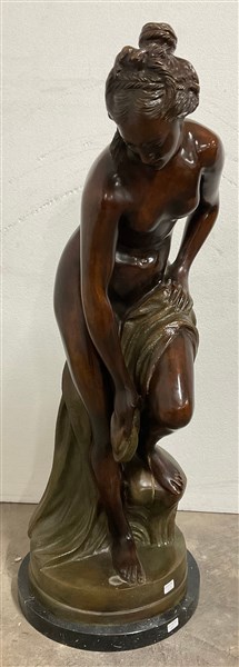 Dal modello di Christophe Gabriel Allegrain, Diana al bagno, scultura in bronzo firmata Canova (h. cm 79) poggiante su colonna in marmo (h. cm 83) (difetti)