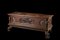 A carved walnut chest, front centered with Della Rovere coat of arms between leaves and flowers. Wrought iron handles (cm 60x166x54) (defects)