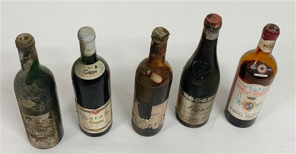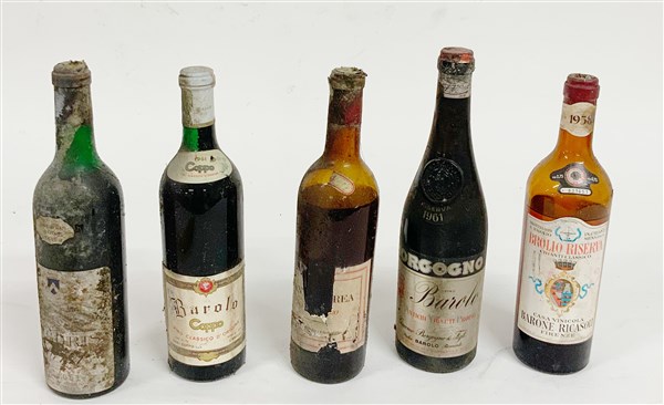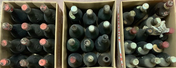 Lotto composto da tre cartoni contenenti numerose bottiglie di cui Badia a Coltibuono e Barolo Borgogno