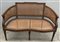 Lotto composto da un divano in noce in stile Luigi XVI con seduta e schienale in paglia di Vienna (cm 130x93x54), unito a coppia di sedie similari in legno dipinto (difetti)