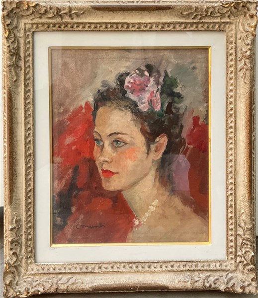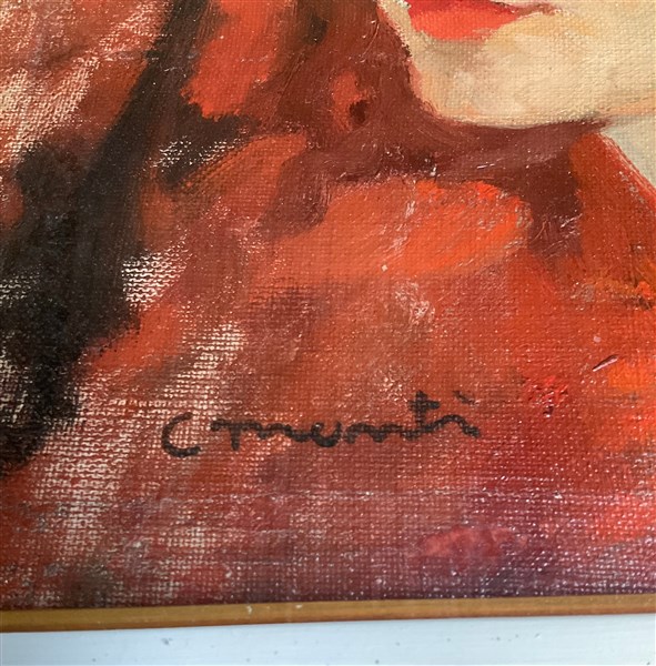 Cesare Monti "Ragazza con rosa" olio su tela (cm 32x27) Firmato in basso a sinis