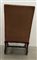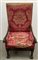 Poltrona in legni vari con braccioli intagliati a volute, gambe e traverse torn