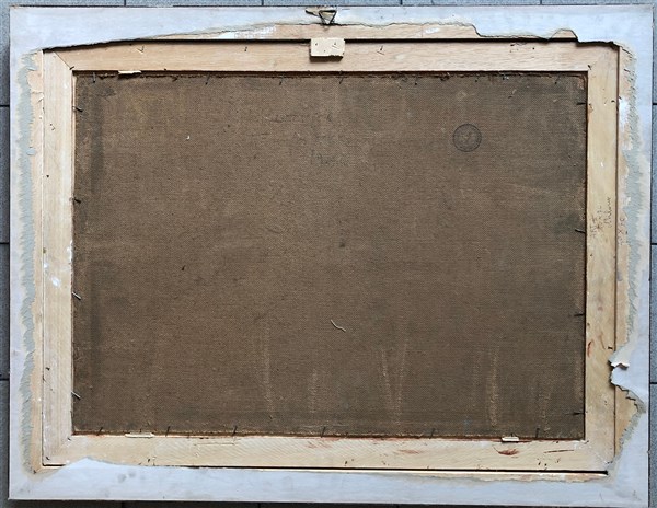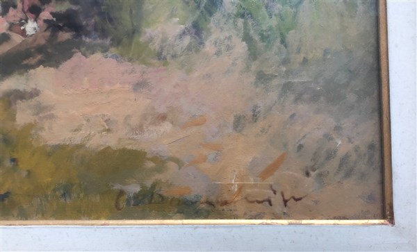 "Butteri nella Maremma" 1950, olio su faesite (cm 50x70) Firmato in basso a destra. Al retro: titolato, timbrato e datato. In cornice