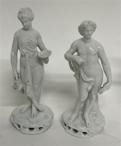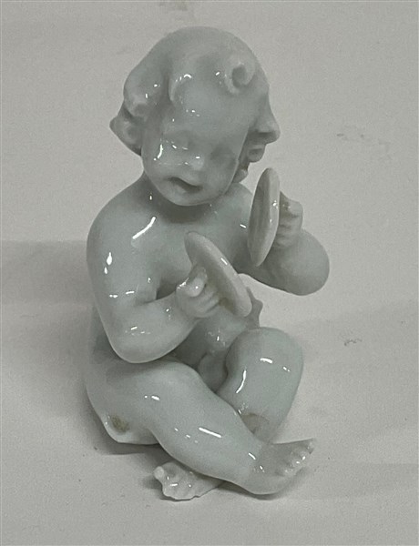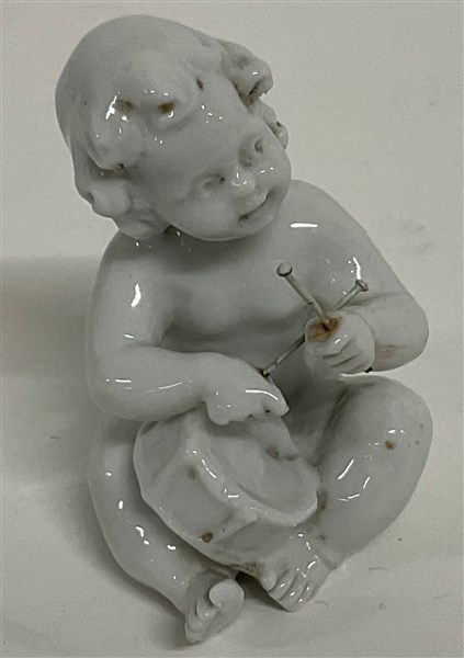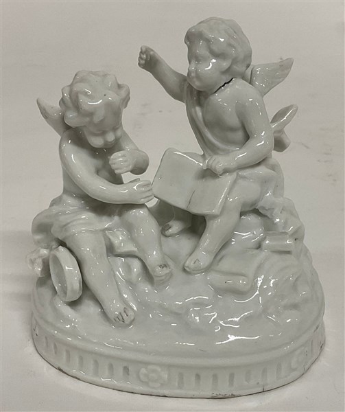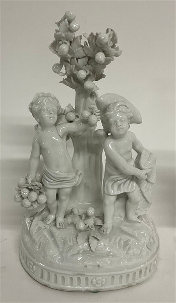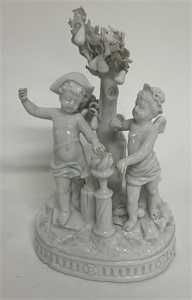 Lotto di diverse figure e tre gruppi in porcellana bianca per lo più raffiguranti putti e figure allegoriche, recanti marchio "N coronata in blu" (h. max cm 17,5) (difetti e restauri)