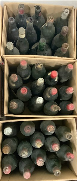 Lotto composto da tre cartoni contenenti numerose bottiglie di vino (gravi dife