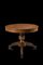 Tavolo di forma tonda interamente lastronato ed intarsiato in legni vari ed oss