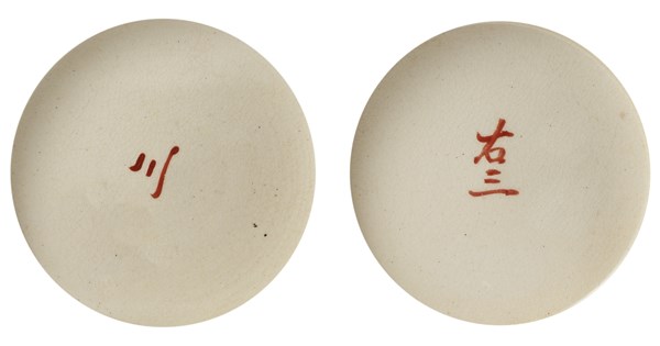 Coppia di vasi a forma di secchiello in ceramica Satsuma decorati con scene di