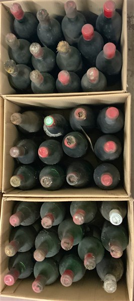 Lotto composto da tre cartoni contenenti numerose bottiglie varie (gravi difett