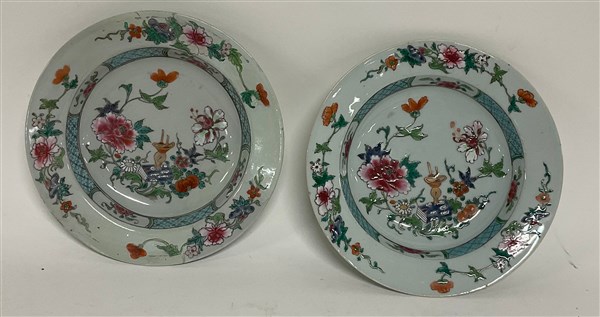Coppia di piatti in porcellana Famiglia Rosa Cina, secolo XVIII/XIX (d. cm 23)