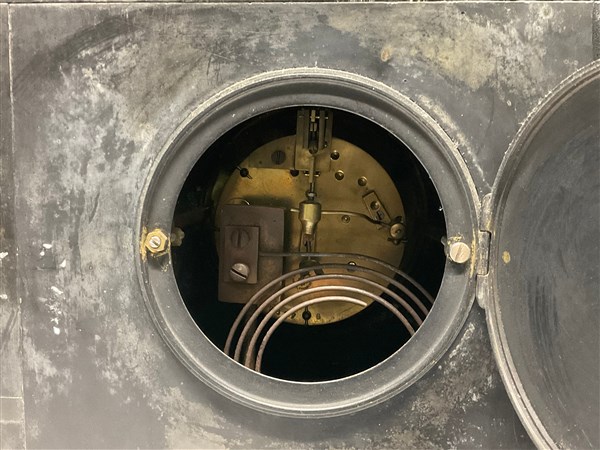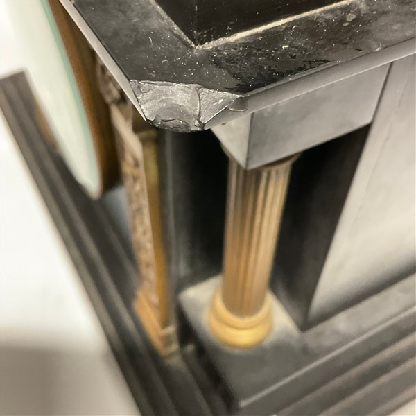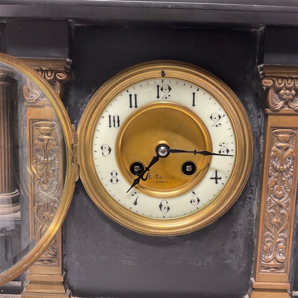 Tainsh, Paris. Orologio di forma architettonica in marmo nero con inserti in br