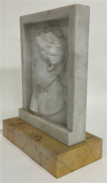 Ignoto scultore di inizio XX secolo, bassorilievo in marmo bianco raffigurante