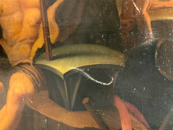 Ignoto, antico dipinto raffigurante Vulcano nella fucina, olio su tela (cm 83,5