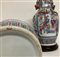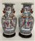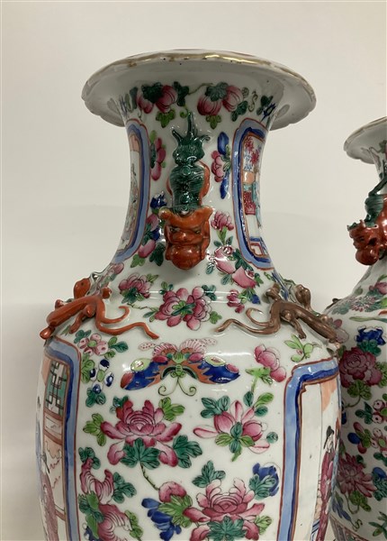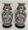 Coppia di vasi in porcellana Famiglia Rosa con decoro policromo a figure, basi