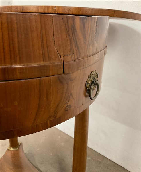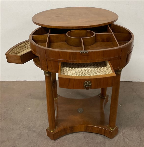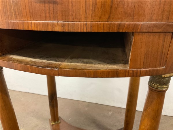 Tavolino da lavoro in stile Impero con piano ovale scorrevole celante vani, tre