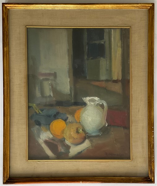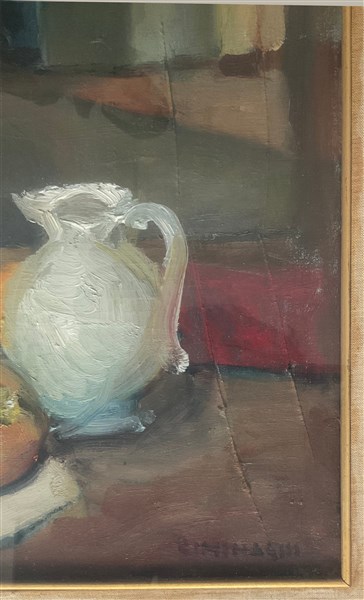 Ignoto del XX secolo "Composizione con vaso e frutta" olio su tela (cm 45x35) Firmato in basso a destra "C. Binaghi". In cornice