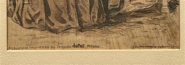 Lotto composto da due acquaforti su tessuto, di cui una edita da Mengaldi a Mil