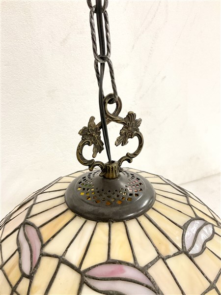 Lotto composto da un lampadario in vetro policromo piombato (h. cm 97) e un lam