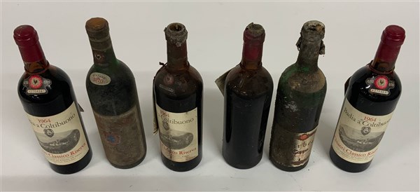 Lotto composto da quattro cartoni contenenti numerose bottiglie di vino tra cui Badia a Coltibuono e Chianti Classico