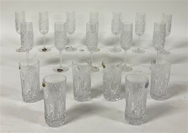 Lotto 1225 | Lotto composto da dodici flûte e sei tumbler in cristallo molato (difetti)