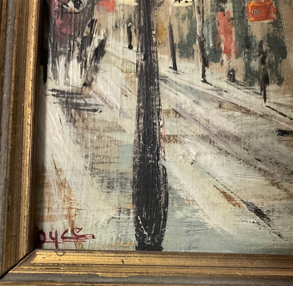 Lotto 1235 | Firma indecifrata "Veduta di città" olio su compensato (cm 15,5x20) Firmato in