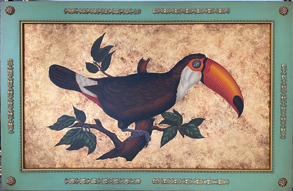 Lotto composto da una stampa su compensato raffigurante tucano (cm 69x114), un