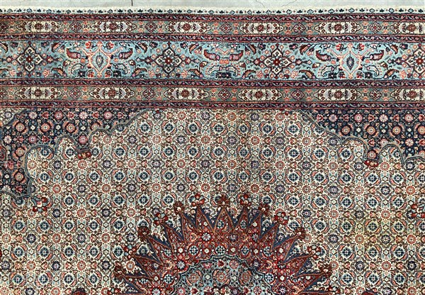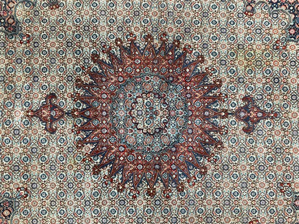 Tappeto Keshan, Persia, secolo XX. Decoro con medaglione stellato su campo bian