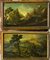 Ignoto, coppia di antichi dipinti raffiguranti figure in paesaggi, olio su tela
