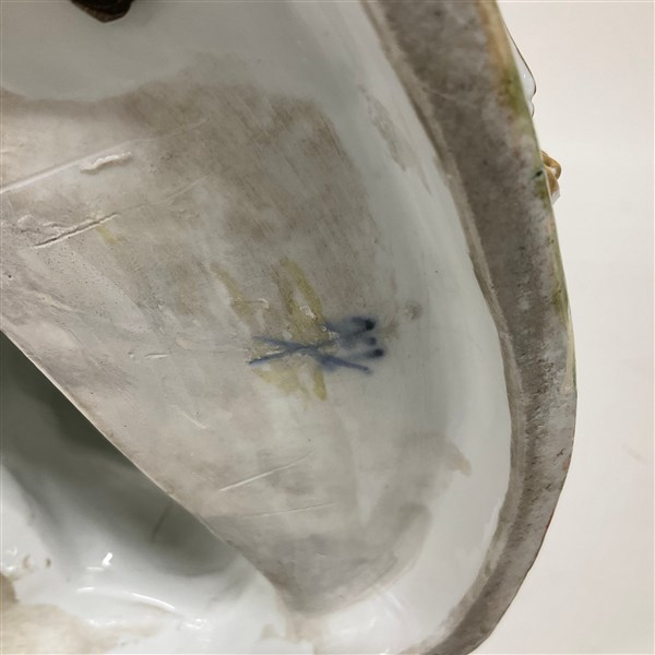 Manifattura tedesca, secolo XIX. Gruppo in porcellana dipinta in policromia con