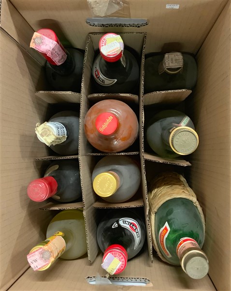 Lotto 1275 | Cartone contenente numerose bottiglie (difetti alle bottiglie, alle etichette e