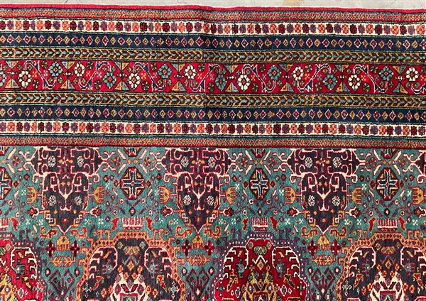 Tappeto caucasico di recente manifattura. Decoro con cinque medaglioni su campo