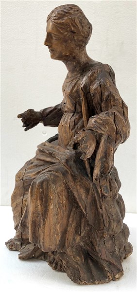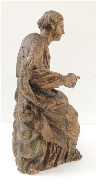 Arte del secolo XVII. Scultura in legno intagliato con tracce di policromia raffigurante la Vergine (h. cm 57) (gravi difetti)