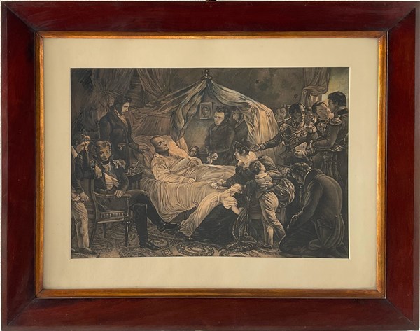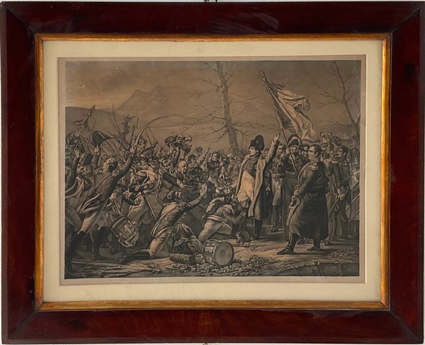 Coppia di stampe monocrome raffiguranti episodi della vita di Napoleone (cm 60x73) in cornici (difetti e restauri)