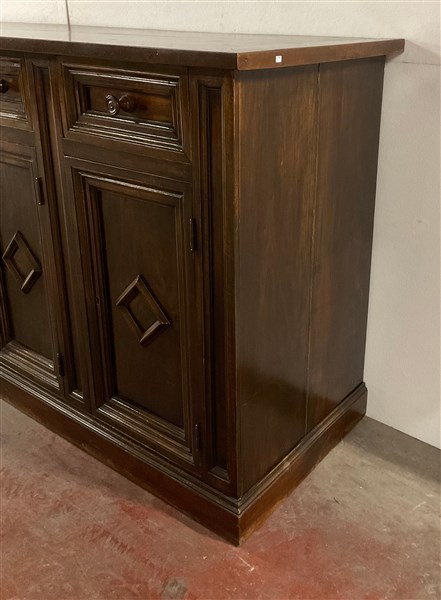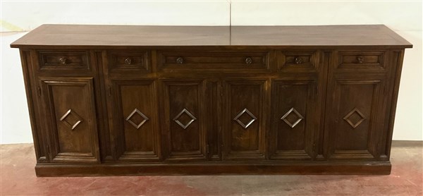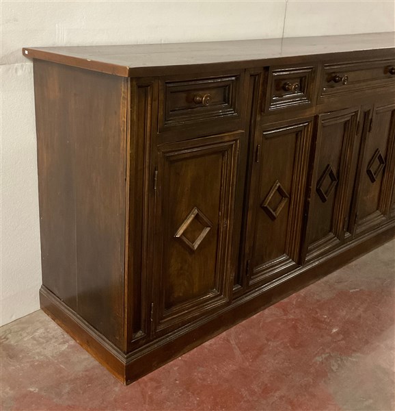 Lotto 1308 | Antica credenza in legno intagliato con fonte a cinque cassetti sottopiano e se