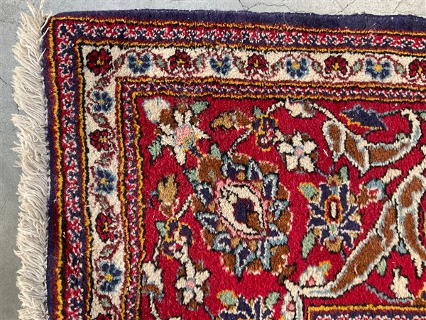 Tappeto Keshan, Persia, secolo XX. Decoro con medaglione lanceolato bianco, ros