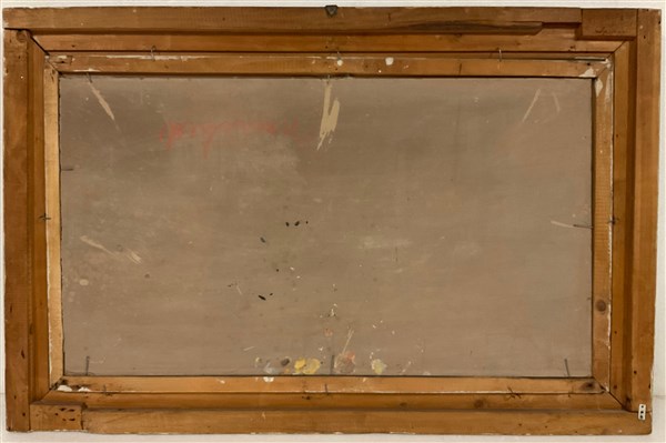 "Barche in laguna" tecnica mista su cartone (cm 46x81) Firmato in basso a sinistra. In cornice (difetti)