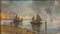 Antonio Cannata "Barche in laguna" tecnica mista su cartone (cm 46x81) Firmato i
