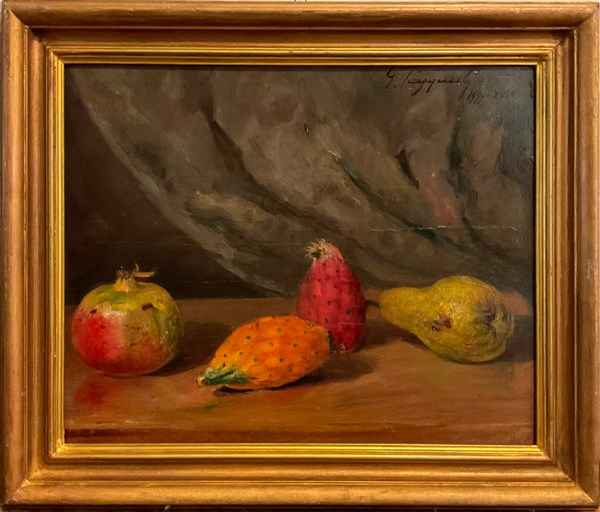 G. Pasquali "Composizione con frutta" 1939 olio su compensato (cm 35x43,5) Firma