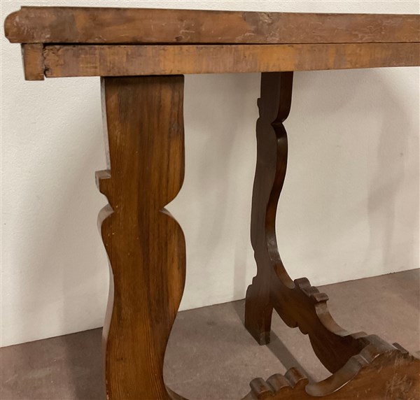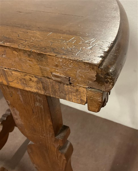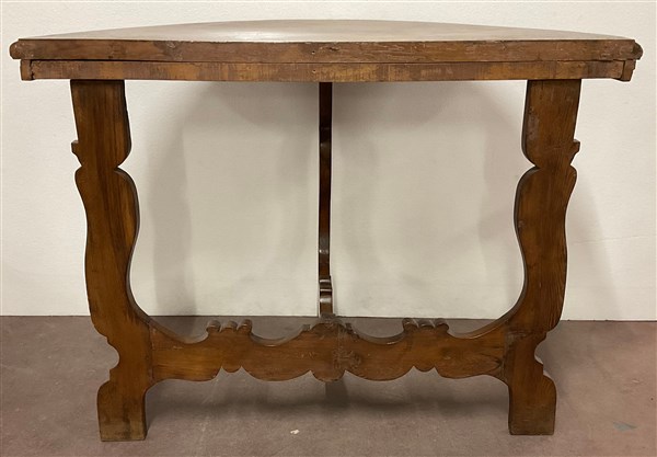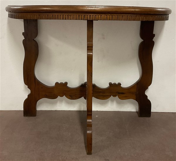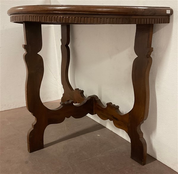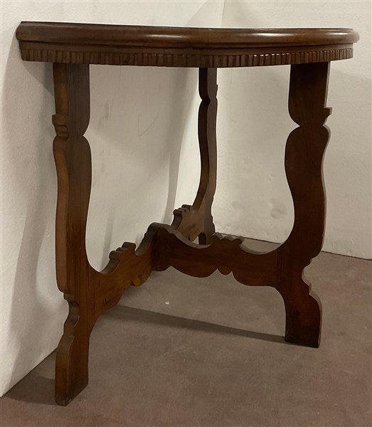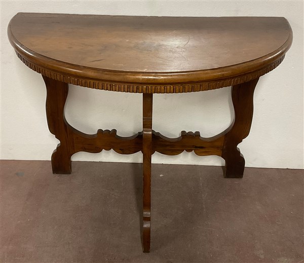 Console a mezzaluna in legno intagliato, gambe sagomate (cm 106x80x54) (difetti)