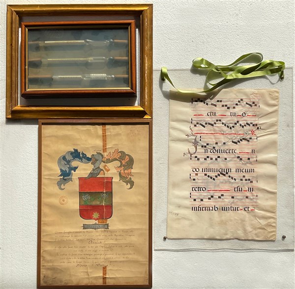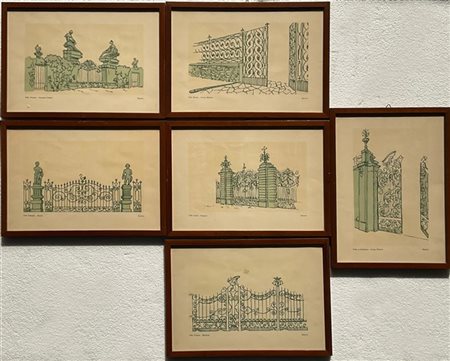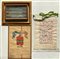 Lotto composto da numerose cornici contenenti riproduzioni, stampe ed una teca contenente tre strumenti di misurazione. Misure diverse (difetti)
