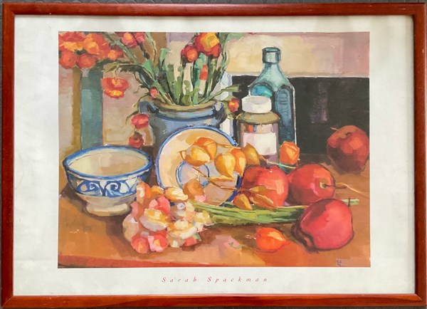 Lotto composto da un dipinto su tela a soggetto etnico (cm 79x58) e tre manifesti di soggetti e misure diverse (misura max cm 92x61)