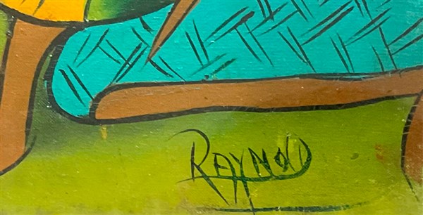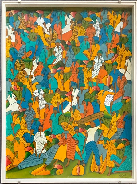 Lotto 1361 | Lotto composto da un dipinto su tela a soggetto etnico (cm 79x58) e tre manifes