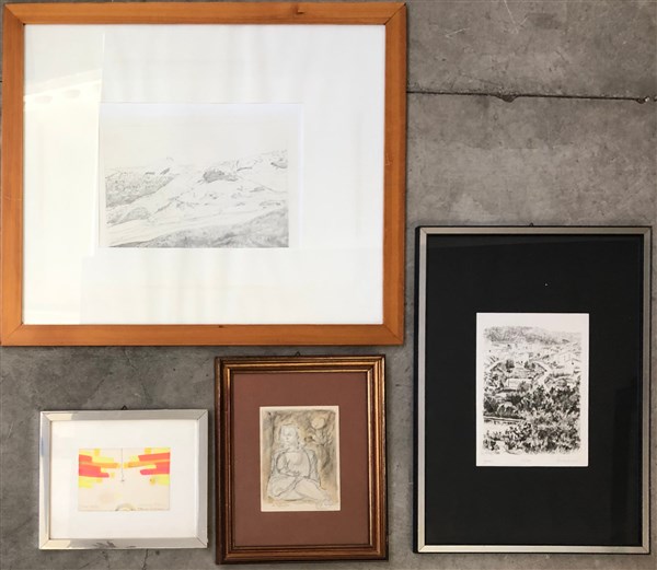 Lotto composto da due tecniche miste, un'acquaforte e una litografia, di soggetto, autori e misure diverse (misura max cm 24x33), tre firmate