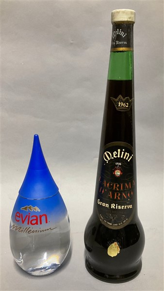 Lotto composto da una bottiglia di Chianti Melini "Lacrima D'Arno" Gran riserva ed una di acqua minerale Evian in confenzione Millenium