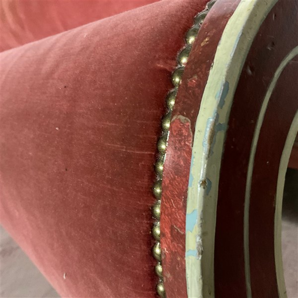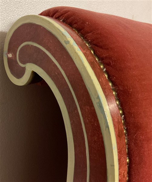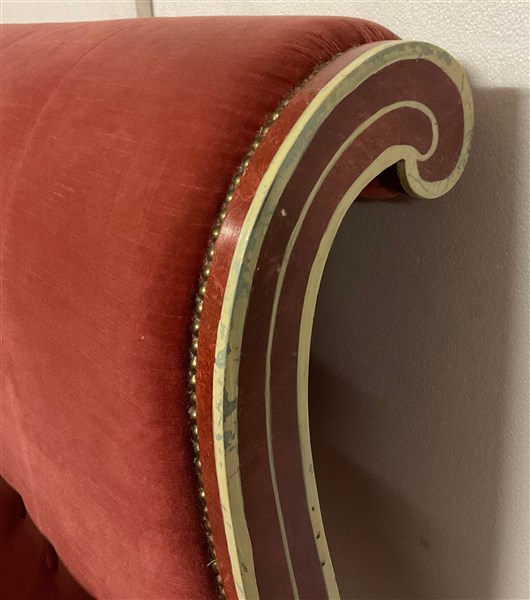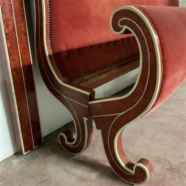 Lotto 1386 | Letto matrimoniale in legno intagliato e dipinto, con testiera e pediera rivest